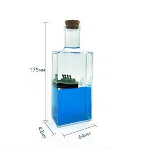 A decorative resin‐and‐acrylic “cruise ship in a bottle” ornament that features a floating ship model inside a sealed fluid (water + oil) environment. When tilted or moved, the liquid inside creates drifting wave motions around the ship & iceberg, giving a dynamic, nautical effect. It’s meant to be used as a showpiece, desk/car dashboard decoration or a gift item
