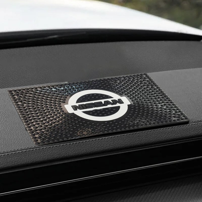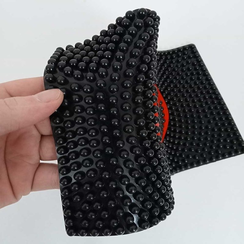 A non-slip silicone mobile mat designed for car dashboards. Holds your mobile phone or small items securely during bumpy or sharp driving, thanks to strong grip silicone material. Washable and reusable, keeps dashboard items from sliding around.