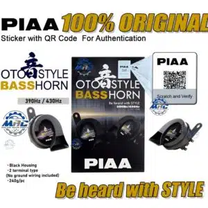 The Piaa Auto Style Bass Horn (HO16B) is a premium Japanese-made horn designed to deliver clear, loud sound signals on the road. With its dual-tone output (390Hz & 430Hz), water- and dust-proof housing, and compact design, it’s suitable for cars, trucks, and motorcycles. It enhances safety by ensuring your horn is heard among traffic noise, while also adding a touch of style thanks to the Piaa branding.