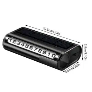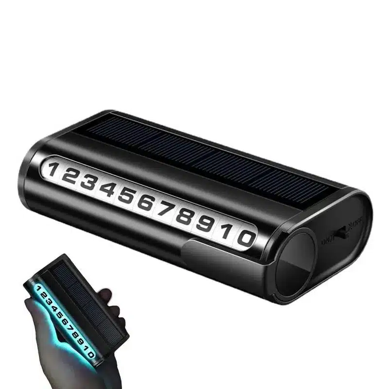 A sleek parking number card that uses solar power to illuminate the number at night. Includes an LED light, built-with luxurious aluminum alloy and ABS materials. Also has a privacy slider mechanism so you can quickly hide the number when you want. Designed to give your car a premium look and functionality