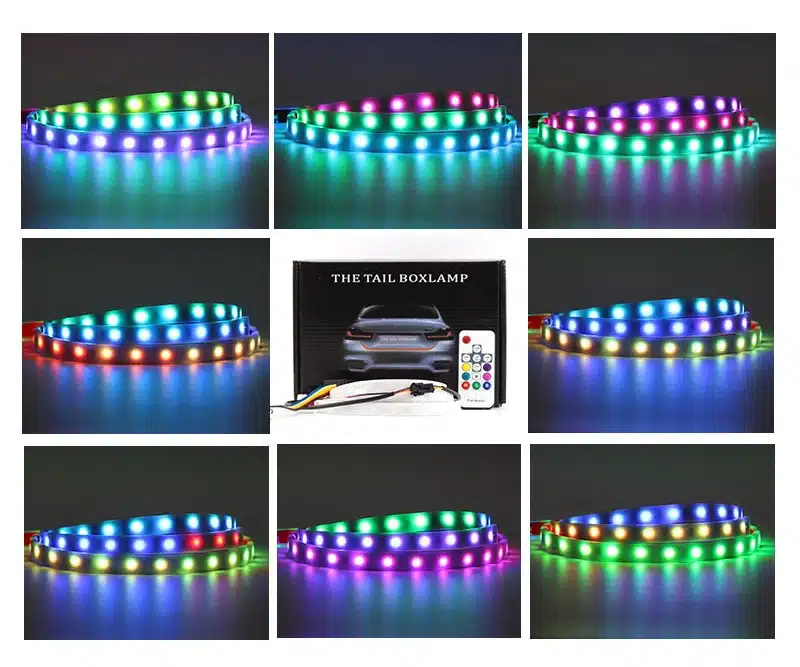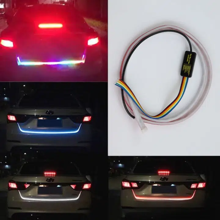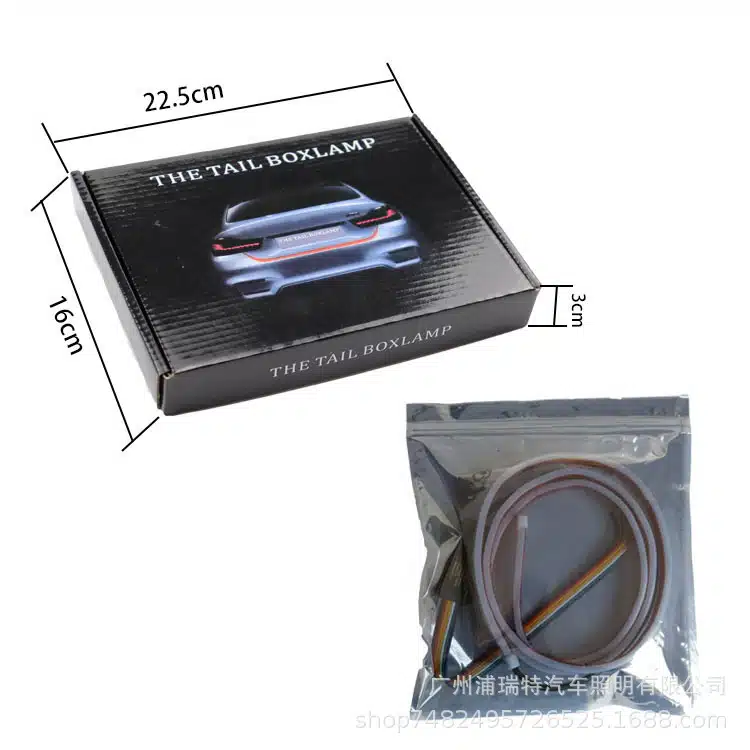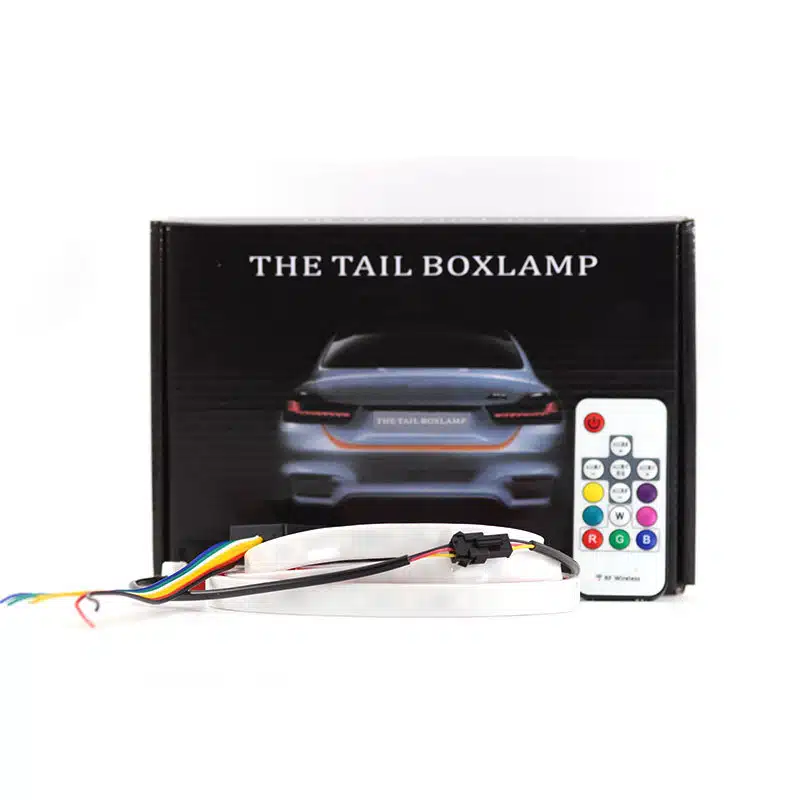 A multifunctional Tail Box Lamp LED strip designed to mount on your vehicle’s trunk or tail area. It offers various lighting modes (tail light, brake light, turn signal, hazard, reverse) and enhances visibility and aesthetics while driving